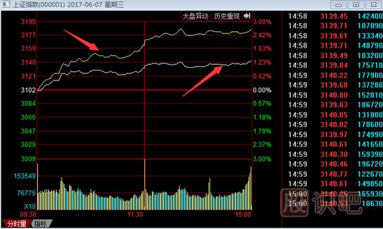 看到了嗎,圖中箭頭所指的黃色曲線和白色曲線就是大盤的分時價格走勢。細(xì)心的投資者,會發(fā)現(xiàn),為什么同一個大盤指數(shù)點位,為什么會由2條曲線表示?到底哪條價格曲線才是大盤真正的指數(shù)點位呢?