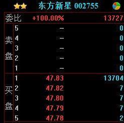 (1)漲停板委比值為100%,委托盤全是買盤。以2017年1月12日漲停的東方新星為例,可看出賣盤沒(méi)有委賣量,而買一的委買數(shù)量遠(yuǎn)遠(yuǎn)高于買二,說(shuō)明該股受市場(chǎng)資金的青睞,比較強(qiáng)勢(shì),明天高開(kāi)的可能性就比較大。