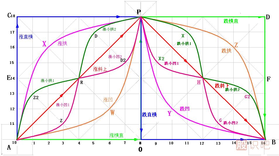 1、基本跌勢從P下跌到Z,再下跌到B,由于是拱形,稱為“跌拱”線。