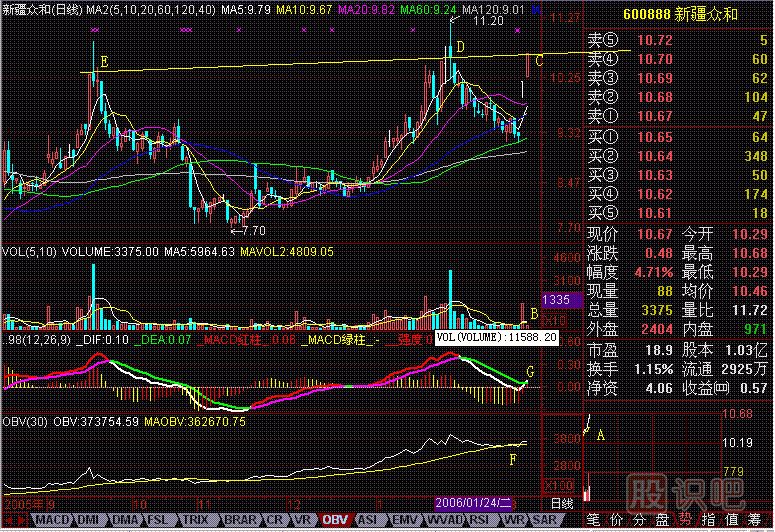 OBV飛行理論圖241-1以前我們學(xué)過股價走勢的飛行理論,是指日K線走勢沿著60日平均線滑行,拉起機頭,股價就上漲了。今天我講OBV飛行理論,大家...