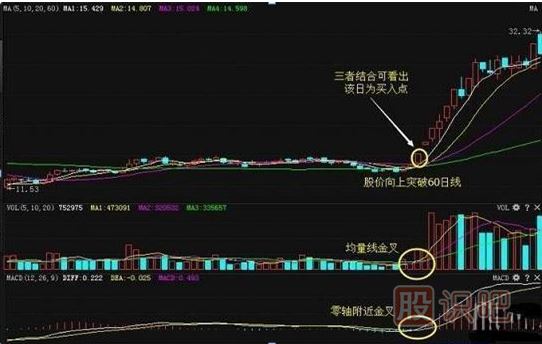 如果在均線和MACD指標(biāo)金叉的同時(shí),均量線也完成了金叉,則說(shuō)明隨著股價(jià)上升速度加快。