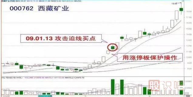 個股放量漲停沖擊大均線年線,構(gòu)成短線追漲買點,短線高手可在漲停直接追漲,是必勝的K線形態(tài),稱之為“牛熊不敗”。