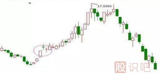 4.一根大陽線之后出現(xiàn)三個(gè)以上小陽線或十字星
