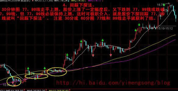 4、一般地,當(dāng)價格K線在一個多頭趨勢中跌破短天期天數(shù)線,必將向長天期天數(shù)線靠攏,而長天期天數(shù)線將對價格走勢起到較強的支撐作用,當(dāng)價格跌破長天期天數(shù)線時,往往是絕好的買入時機;相反地,當(dāng)價格K線在一個空頭趨勢中突破短天期天數(shù)線后,將有進一步向長天期天數(shù)線沖刺的希望,而長天期天數(shù)線將對價格走勢起到明顯的阻力作用,當(dāng)價格突破長天期天數(shù)線后,往往會形成一次回抽確認(rèn),而且第一次突破失敗的機率較大,因此應(yīng)視為一次絕好的賣出時機。