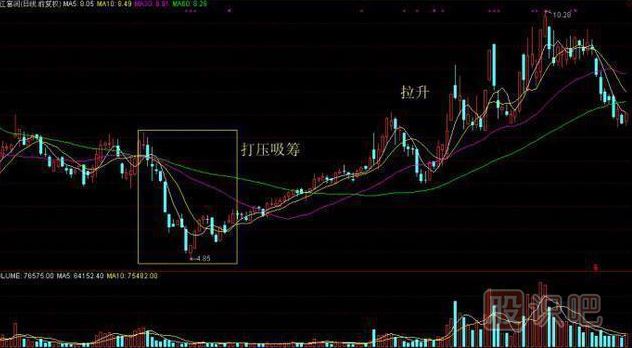 拉 高吸籌也是主力常用的吸籌方法。主力先在股價(jià)平穩(wěn)期開始漫長的籌碼收集過程,可被看做是潛收集。到了某個(gè)時(shí)候,主力覺得時(shí)機(jī)成熟了,開始大量買進(jìn)籌碼,使股價(jià)快速上升,這時(shí)的K線圖上出現(xiàn)連續(xù)的陽線,此階段可被看做強(qiáng)收集階段;強(qiáng)收集階段結(jié)束后,主力有時(shí)會(huì)進(jìn)行震倉洗籌,使很多獲利盤吐出,有時(shí)則直接進(jìn)入拉高階段。