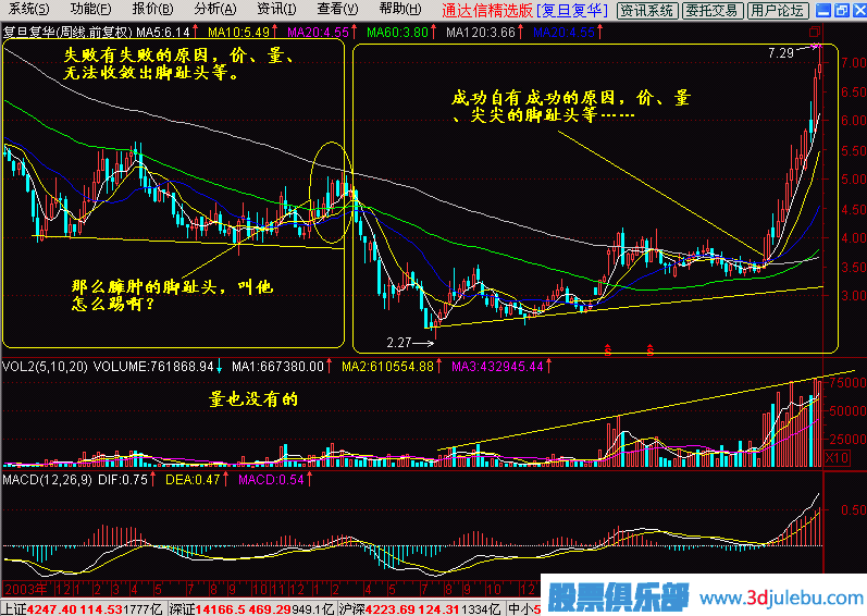 下面是同一只股票不同時(shí)段的兩只腳,結(jié)果一只失敗,一只成功了。見(圖1-4)