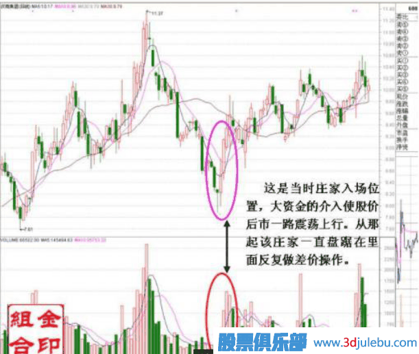 四,莊家入場后目標(biāo)股票股價一般表現(xiàn)比較強或者比較獨立。經(jīng)常出現(xiàn)大盤跌時它表現(xiàn)較強勢;大盤走好它偏偏走弱。莊家入場后目標(biāo)股票股價后市一般走勢震蕩上行或者向震蕩,一般不會出現(xiàn)下破莊家入場時的低位。