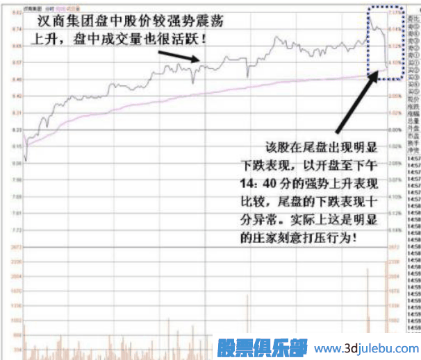 二, 個股如果有莊家入場吸籌,當(dāng)日盤中成交量也會明顯放大。目標(biāo)個股出現(xiàn)尾盤最后幾分鐘打壓股價痕跡時,當(dāng)天該股的成交必須活躍才說明是 莊家 入場吸籌后刻意的打壓。