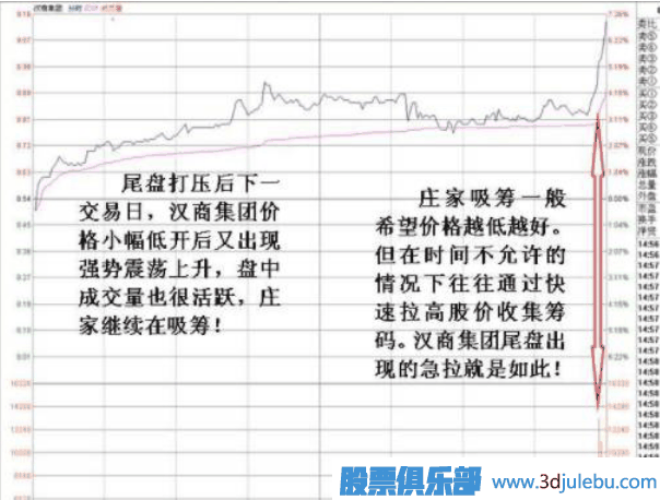 莊家打壓吸籌行為動作中,有一種是利用 尾盤最后幾分鐘快速將 股價打低 。一般用幾筆大賣單將股價打低 2%—3% 左右。建倉時莊家 尾盤 打低 股價 目的是, 為了在次日吸籌有更便宜的價格,以降低籌碼平均成本。 股價被砸低后使得當(dāng)日該股日 K 線影有較長上影線十字星,制造難看的圖表。這起到振倉和減少技術(shù)派大量跟進作用。
