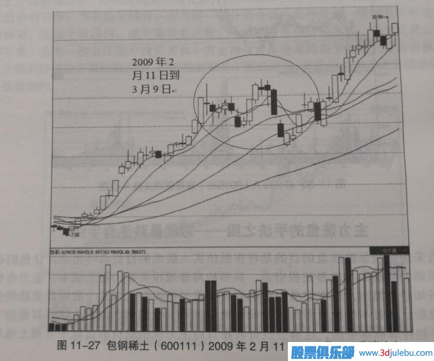 滯漲洗盤手法分為放量滯漲洗盤和縮量滯漲洗盤兩種,放量滯漲洗盤是主力利用股價有一定漲幅后,在一定位置