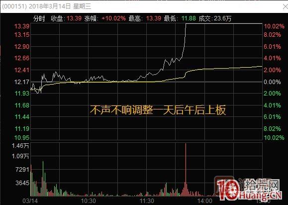 主要的形式有三種,一種是漲停之后的爛板放量,一種是早上快速放量后10:30之前上板,一種是不聲不響的調(diào)整一天后午后(或10:30之后)上板。