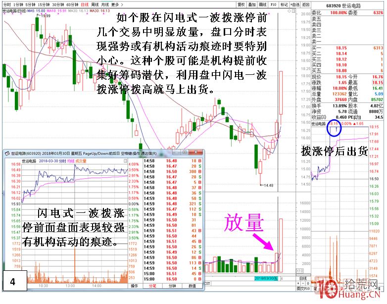 4、機(jī)構(gòu)前期進(jìn)入被套,利用閃電一波撥漲停撥高自救(撥高就走或不出)