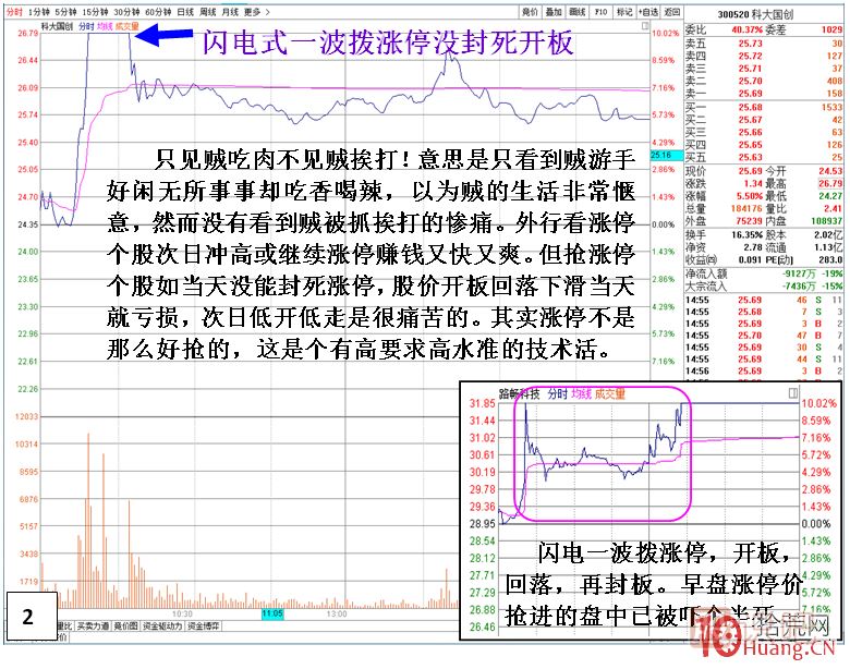 閃電一波撥漲停如是純粹由市場(chǎng)各路資金共同推上去的,利用一般的技術(shù)分析去判斷該股能不能封死就可以。如是由機(jī)構(gòu)大戶(hù)作為領(lǐng)頭羊起主導(dǎo)作用推高的,就要分析該機(jī)構(gòu)主力如此撥高的行為目的了。目的不同在股價(jià)推高后的出現(xiàn)的動(dòng)作不同,這將明顯影響到股價(jià)能不能封死等表現(xiàn)。