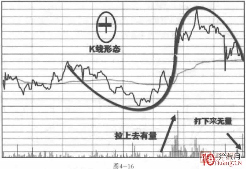 我們看到,在全天的走勢中,成交量隨著洗盤形態(tài)的不同而變化著——早盤進(jìn)行拱形洗盤時的成交量是一種拉上去有量、打下來無量的狀態(tài);而在下午的U形洗盤時的成交量正好相反,是打下來有量、拉上去無量。為什么會出現(xiàn)這種相反的成交量結(jié)構(gòu)呢?其奧秘就是上午和下午主力洗盤的用意不同所致: