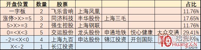 當(dāng)天板塊共計17個票漲停,開出飛樂音響一個一字板,最先快速上板的是上海鳳凰,其它都是按照時間先后順序上板。