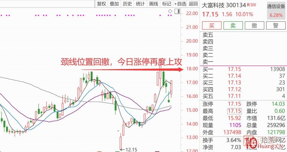 大富科技(300134) :屬于典型的鋸齒橫波洗盤漲停!