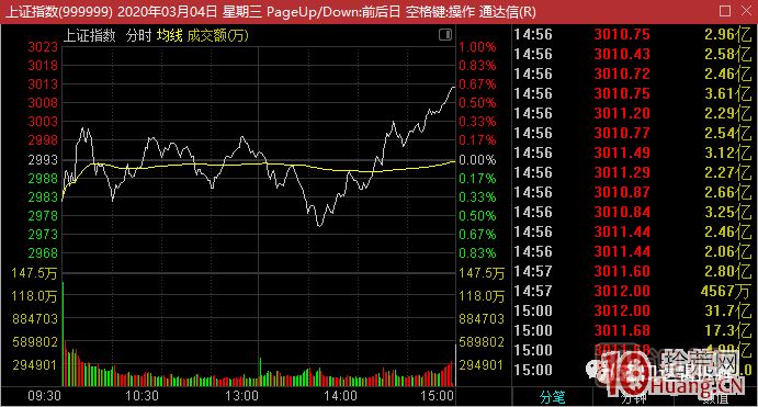 白色曲線:大盤加權(quán)指數(shù),平時(shí)聽到的上證指數(shù)取的就是白線的漲跌值。