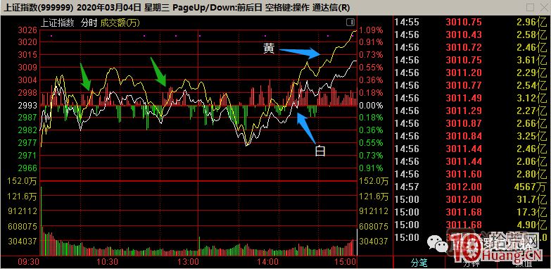 超短高手如何處理大盤領(lǐng)先圖的設(shè)置:大盤指數(shù)分時(shí)圖上的黃線、白線,是什么