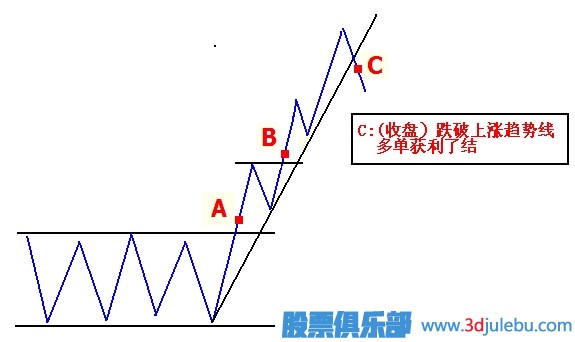 3、收盤(pán)跌破上漲趨勢(shì)線,多單獲利了結(jié)。