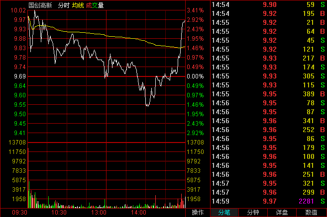 6、11月9日修改補(bǔ)充,國(guó)創(chuàng)高新漲停,距離一字漲?;卣{(diào)后已經(jīng)有10多個(gè)點(diǎn)的漲幅。
