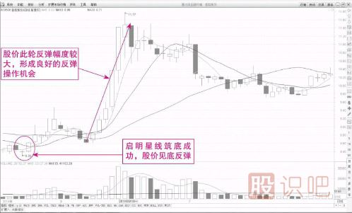 大,這是多方力量較為充足的表現(xiàn)。因此可以說,啟明星線形態(tài)是個股階段性下跌結束的信號,它預示著隨后即將出現(xiàn)的反彈回升走勢。