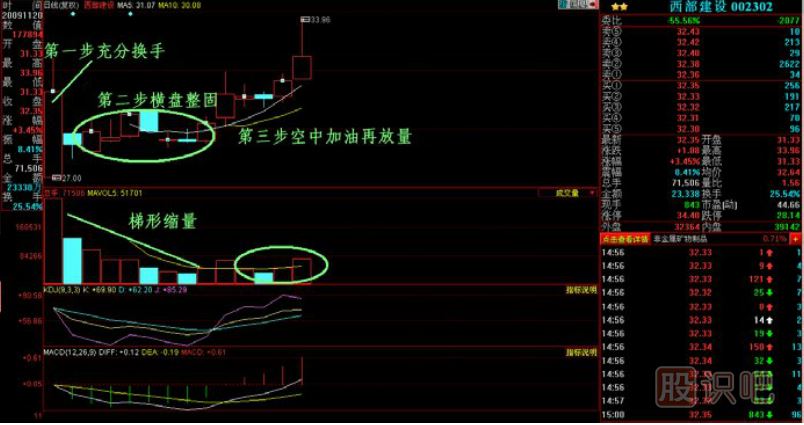 1、符合梯形遞減量+L形平臺(tái)突破;