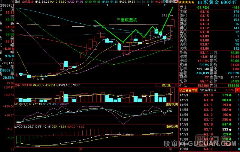 技術(shù)分析:三重底坑是多重底坑的一種,也為常見(jiàn)的經(jīng)典出坑方式。股價(jià)在爬出坑底的時(shí)候,要面臨上方層層套牢盤打壓,莊家通過(guò)三大陽(yáng)拉高一小陰回抽”的振蕩底手法來(lái)把高位的套牢盤磨到底部來(lái),形成三重底坑,化解壓力。出擊點(diǎn):每次回抽點(diǎn)位。