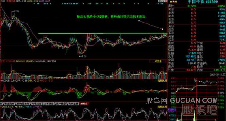 1、放量初現(xiàn)托塔天王技術(shù)形態(tài),在隨后的小K線整理中是介入點(diǎn);