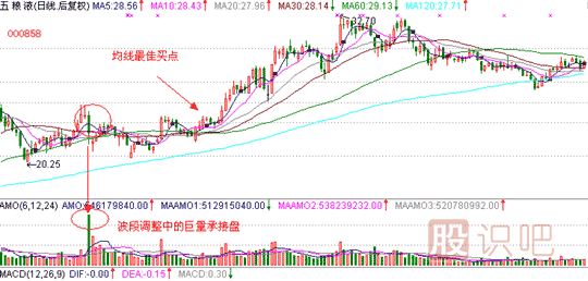 五糧液(000858)需要指出的是底部大量不僅適用于長(zhǎng)期底部,而且還可以指波段調(diào)整的底部,2009年9月9日,五糧液主力利用利空打壓洗盤,股價(jià)放出了天量。此時(shí)投資者要切忌割肉,在股價(jià)調(diào)整區(qū)域出現(xiàn)了天量我們一般認(rèn)為是主力進(jìn)場(chǎng)所致,因此此時(shí)可以適當(dāng)加倉(cāng)。從上圖看很明顯決策線和趨勢(shì)線筆挺向上,股價(jià)仍處于強(qiáng)勢(shì)之中。隨后果不其然股價(jià)兩個(gè)月從20元漲至32元,當(dāng)然穩(wěn)健的投資者還是要在箭頭所指處即股價(jià)突破均線密集壓制時(shí)再大舉入場(chǎng)。