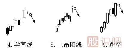 連續(xù)數(shù)天揚(yáng)升之后,隔天出現(xiàn)一根小陽線,并完全孕育在前日之大陽線之中,表示上升乏力,是暴跌的前兆。