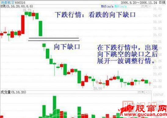 在下跌的價格環(huán)境中,如果出現(xiàn)了一個向下缺口,則意味著還將進(jìn)一步下降。