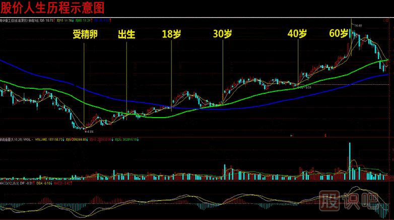 2、隨著量能的放大、低點(diǎn)抬高,高點(diǎn)也創(chuàng)出新高,某天股價(jià)上穿60日價(jià)格平均線,意味著股價(jià)開始具有生命,猶如剛剛出生的嬰兒。