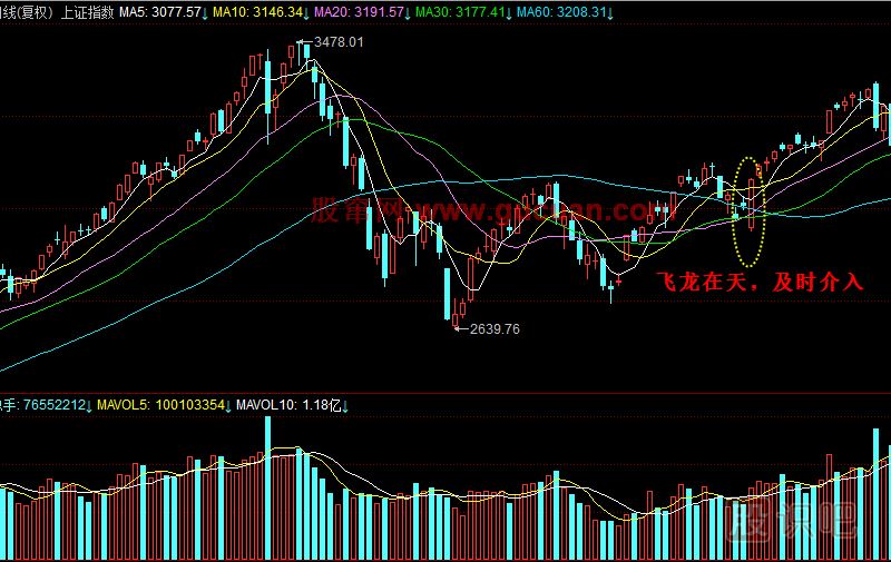 出現(xiàn)這樣一根飛龍?jiān)谔斓年柧€,正是短線介入的時(shí)機(jī)。此后上證指數(shù)繼續(xù)震蕩上揚(yáng),其中很多個(gè)股短期更是走出了大幅上漲的趨勢(shì),如果我們能夠及時(shí)抓住這一機(jī)會(huì),就能夠賺錢。至于賺多賺少,要看自己對(duì)個(gè)股的選擇能力。