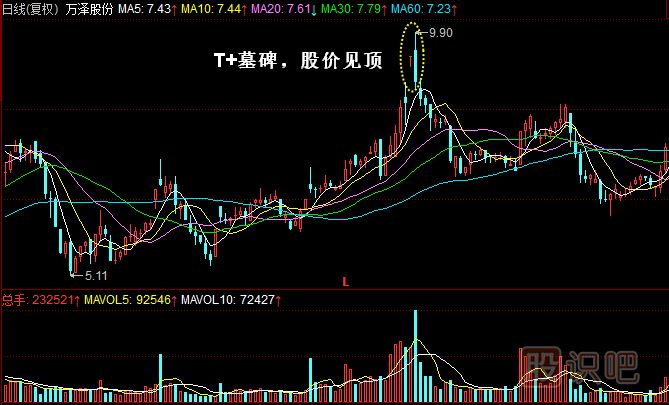 3.死亡墓碑K線組合變異為T+陰線時(shí)是見頂信號,部分個(gè)股短期殺跌后略有反彈。
