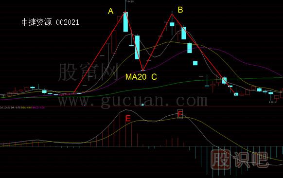 中捷資源(002021)在2015年7月2號(hào)左右形成高點(diǎn)A,在8月18號(hào)左右形成高點(diǎn)B,期間曾經(jīng)回調(diào)到C位置,在此例子中正好是20日均價(jià)線(xiàn)附近,形成ACB的過(guò)程就像是畫(huà)了一個(gè)M。