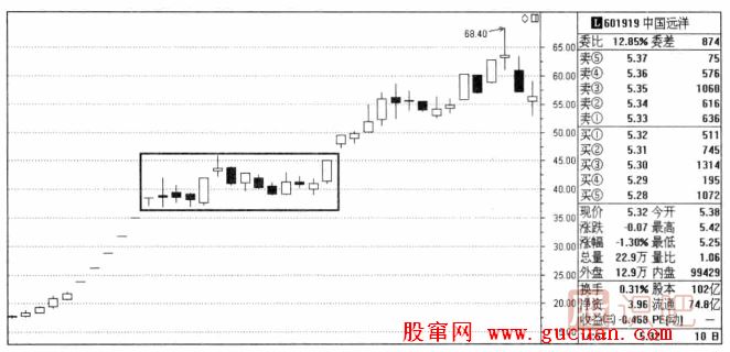 如圖是2007年中國遠(yuǎn)洋走勢圖,在圖中我們可以看到,中國遠(yuǎn)洋在經(jīng)過一輪大漲之后,橫盤休整做了矩形整理,之后又出現(xiàn)了新一輪拉升,最終從20元左右一直上漲至最高64元。