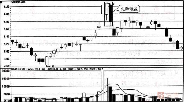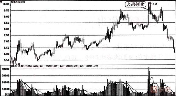 (1)大雨傾盆的成交量如果急劇放大,甚至放出近期以來的天量,則主力在高位出局的愿望強(qiáng)烈,跌勢(shì)也將更加猛烈。 并且陽線實(shí)體高出陰線實(shí)體的部分樾多,轉(zhuǎn)勢(shì)信號(hào)越強(qiáng)。