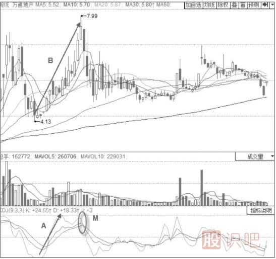 股票趨勢(shì)分析技術(shù)給您說(shuō)股價(jià)見頂時(shí)的KDJ指標(biāo)信號(hào)-J線大斜率向下的KDJ高位“死叉”J線大斜率向下的KDJ高位“死叉”,是指當(dāng)KDJ三線運(yùn)行到了頂部高位區(qū)時(shí),在發(fā)生高位“死叉”時(shí),J線向下運(yùn)行的斜率較大。這往往是...