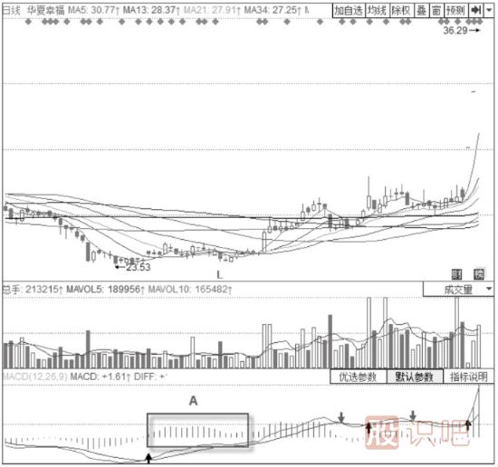 股票賣出技術(shù)分析來(lái)談KDJ指標(biāo)+MACD經(jīng)典買入形態(tài)-DIFF低位鈍化+KDJ低位震蕩形態(tài)