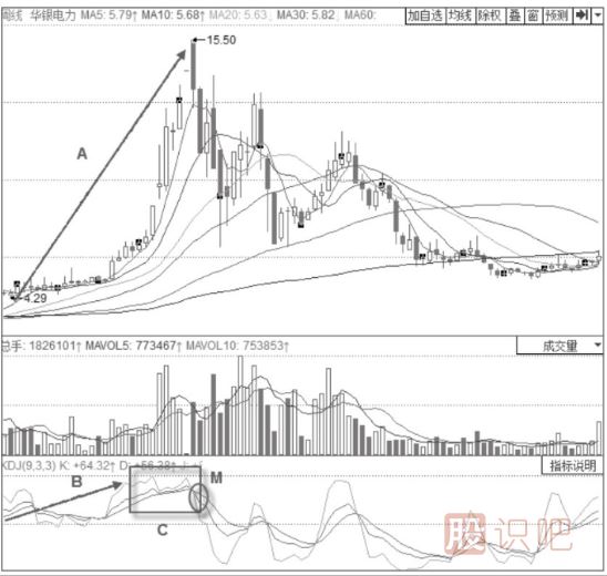 股票走勢(shì)的技術(shù)分析解說(shuō)KDJ指標(biāo)+島形頂K線圖形態(tài)的賣出技巧