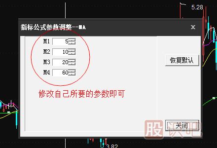 首先,鼠標左鍵雙擊K線走勢圖,屏幕出現(xiàn)十字線。 然后,鼠標右鍵點擊看盤軟件左上方所顯示的MA參數(shù)(如圖所示)