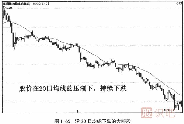 大牛市的大部分時(shí)間,或者大部分牛股,都是依托20日均線或30日均線上升的。同樣,大熊市的大部分時(shí)間,或者大部分大熊股,都是依托20日均線或30日均線下跌的。