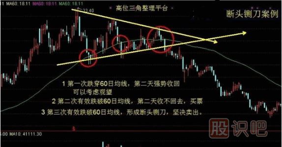 1、前兩次的跌破60日均線我們事前行為很難判斷賣點,但是第三次的有效跌破60日均線就可以完全判斷出賣點。
