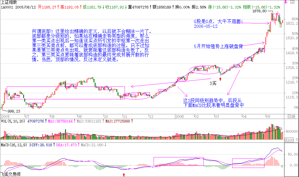 即2006年5月12日《G股是G點(diǎn),大牛不用套纏論中樞公式給您議G股是G點(diǎn)大牛不用套!》纏股市開篇第一課之后,歷時半年纏于2006-06-07 18:08:15為什么開始寫教你炒股票1:《不會贏錢的經(jīng)濟(jì)人,只是廢人!》?請看纏的第十課后我的配圖就一切都明白了。整個108課,纏帶領(lǐng)著大家經(jīng)歷了一個完整的上漲啟動和下跌的結(jié)束,她在08年8月教你炒股票108:何謂底部?從月線看中期走勢演化(2008-08-29 09:15:01)一文中明確教大家在此處的分型的判斷中如何確立底部分型到2008年10月底確立后。課文也隨著她的2008-10-10 09:24:36《無話可說》結(jié)束了全部課程。