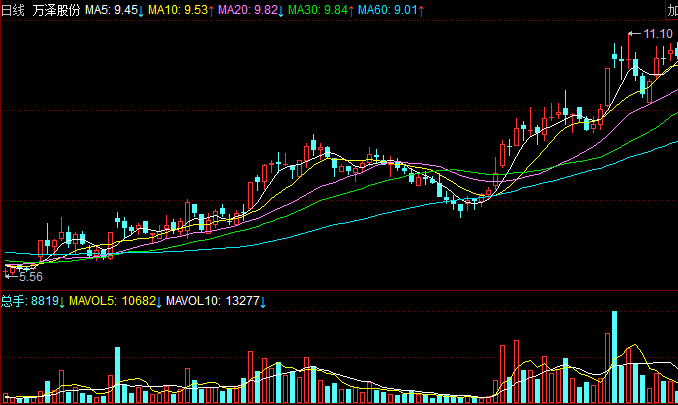萬(wàn)澤股份(0534):該股在2000年3月28日時(shí)走勢(shì)較好,主力痕跡明顯,當(dāng)時(shí)有多家較大的機(jī)構(gòu)在三大類報(bào)紙上多次推薦。推薦之后,上揚(yáng)10%左右后,縮量下調(diào)。不過調(diào)整的時(shí)候,成交量極度萎縮,主力不能順利出局。侃談如何運(yùn)用相反理論挑選個(gè)股終于在調(diào)整至6.86元時(shí)止跌,發(fā)起另一輪更兇的行情,并創(chuàng)出了11.12元的近年新高。如圖所示。